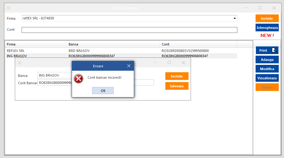 Verificare IBAN: Programul validează automat dacă un număr de cont IBAN introdus este corect, înainte de a salva.