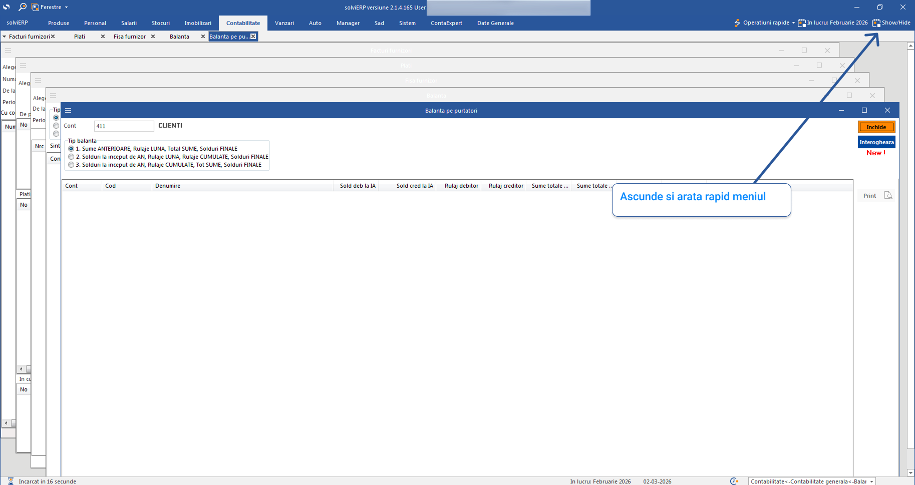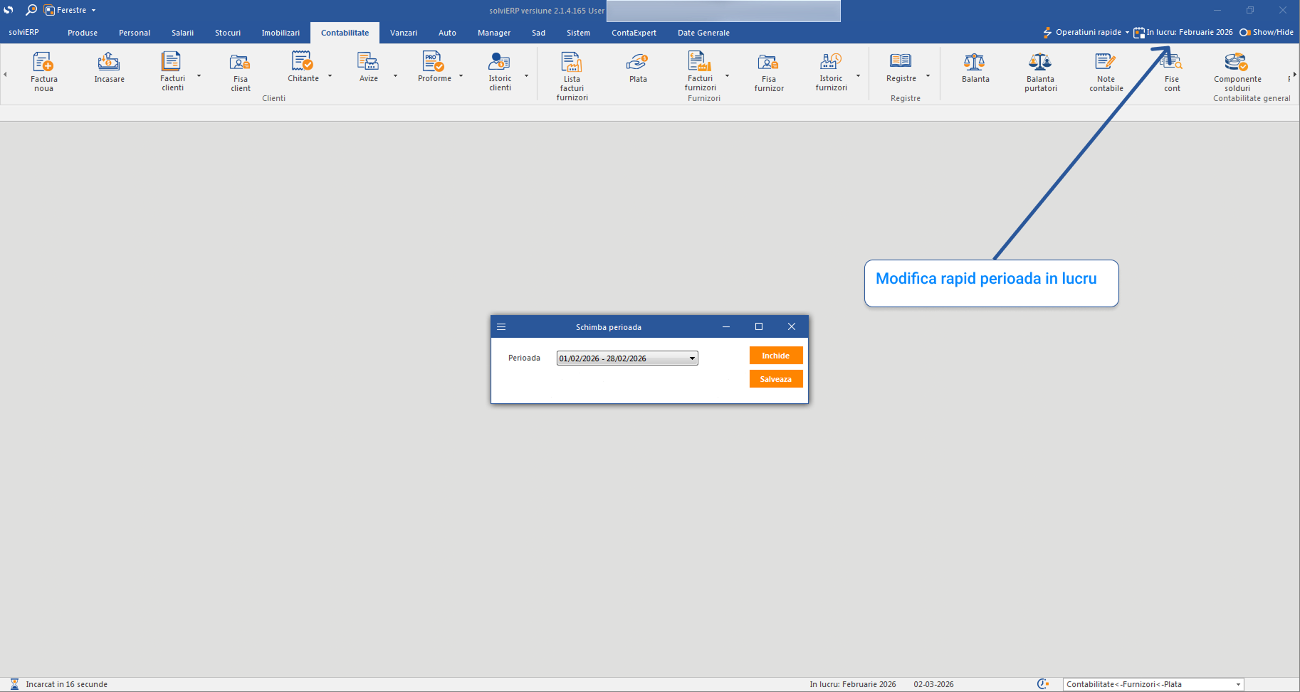 Acum poți schimba luna sau anul de lucru direct din colțul din dreapta sus al ecranului — mult mai vizibil și mai rapid. Dacă preferi vechiul mod, butonul din bara de jos funcționează în continuare.